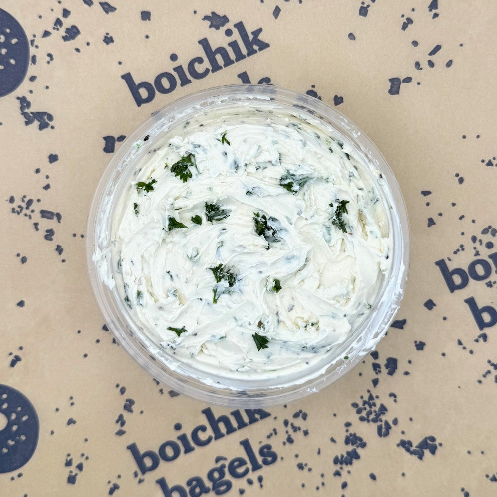 This new seasonal cream cheese is made with parmesan, garlic, parsley, and black pepper!